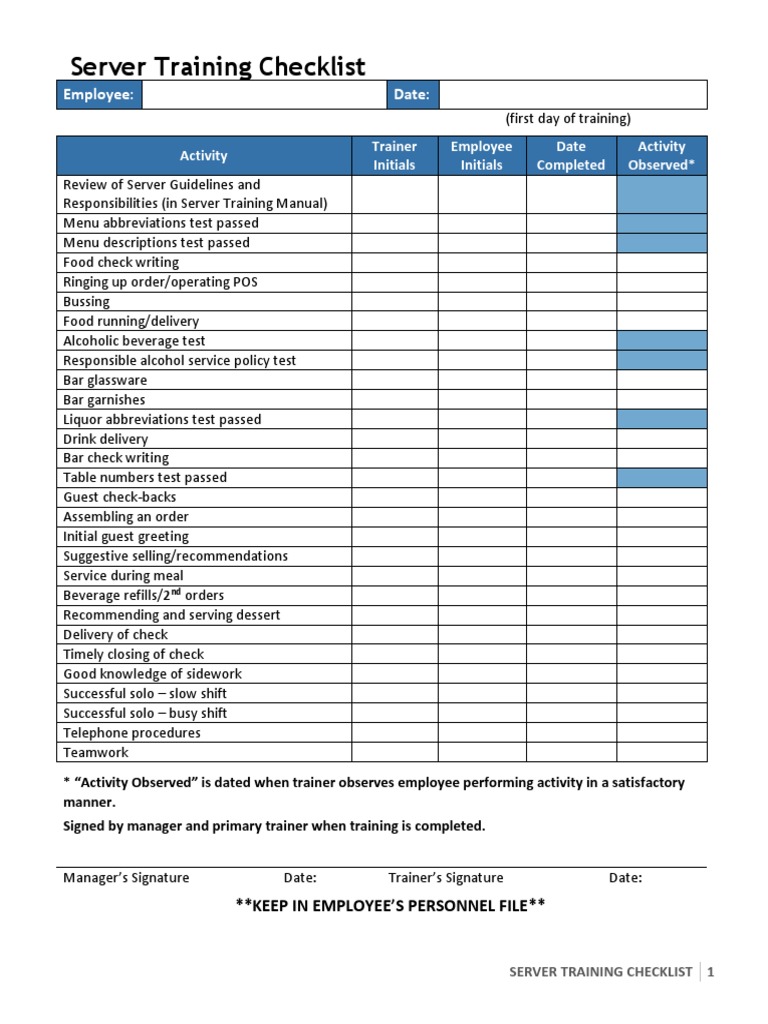 Restaurant Server Side Work Checklist Template Sample GeneEvaroJr